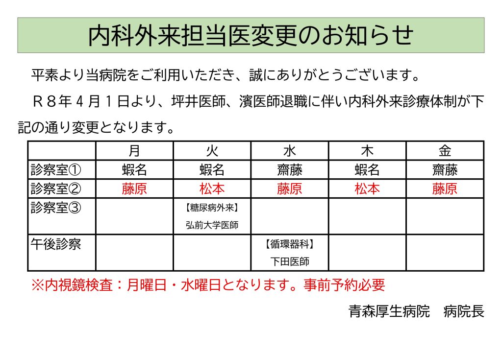 R8年4月からの内科外来体制について